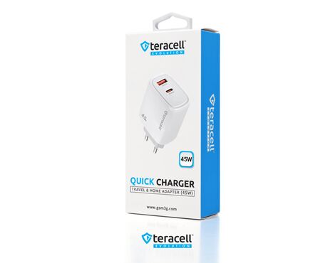 Kucni punjac Teracell Evolution TC-19, GAN, QC, PD Fast charging 45W beli CE - Kućni punjač je sastavni deo svakodnevnog korišćenja mobilnog telefona. Od kvalitetnog punjača zavisi radni vek baterije, tako da će Vam ovaj punjač omogućiti brzo i kvalitetno punjenje. Kućni punjač za Kucni punjac Teracell Evolution TC-19, GAN, QC, PD Fast charging 45W beli CE je atestiran, dolazi sa garancijom i vrhunskog je kvaliteta.