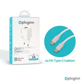 Kucni punjac Pluginn PI-D73-27w, PD 3.0, PPS, 27W sa PD Type C kablom beli CE