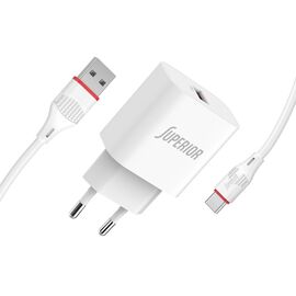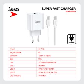 Kucni punjac Superior SU-P102 20W Super Fast USB A QC3.0+Type C sa Type C na Type C kablom beli (CERT) (MS)