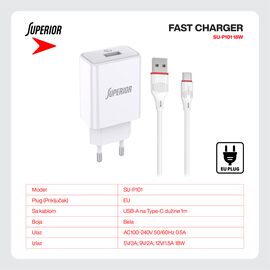 Kucni punjac Superior SU-P101 Fast QC3.0 18W 3A Type C beli (MS)