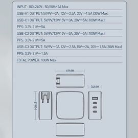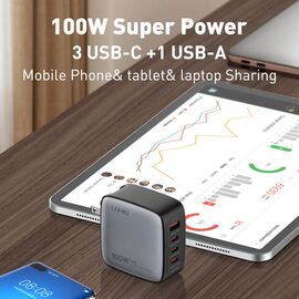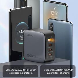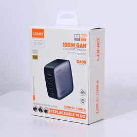 Kucni punjac sa adapterima LDNIO Q408 GaN PPS QC3.0 (30W), 3xPD3.0 (100W), 100W Max, a Type C na Type C kablom crni