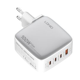 Kucni punjac sa adapterima LDNIO Q408 GaN PPS QC3.0 (30W), 3xPD3.0 (100W), 100W Max, sa Type C na Type C kablom beli