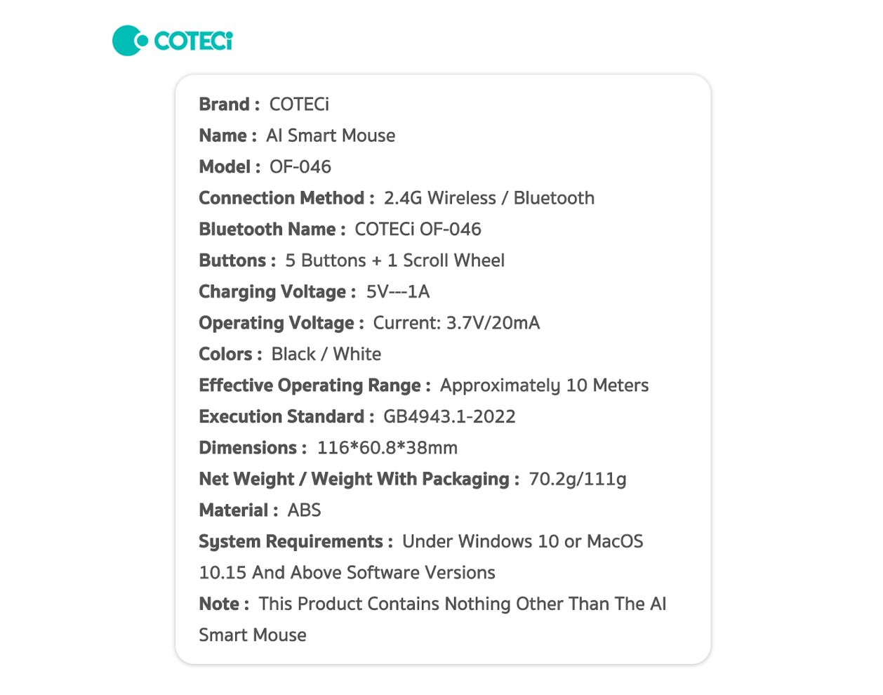 Mis Coteci OF-046 AI Smart beli
