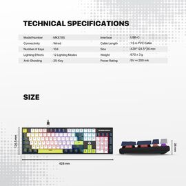 Tastatura Mehanicka Gaming Fantech MK878S RGB Atom 104S Mori bela (Red switch)