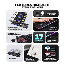 Tastatura Mehanicka Gaming Fantech MK314 RGB Atom AIR 108 bela (red switch)