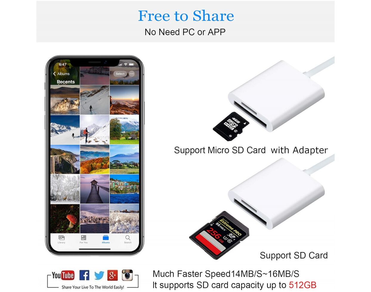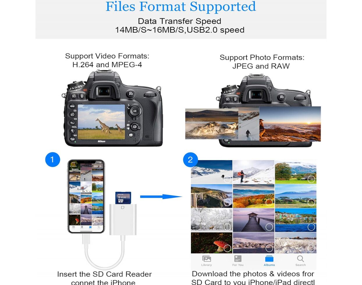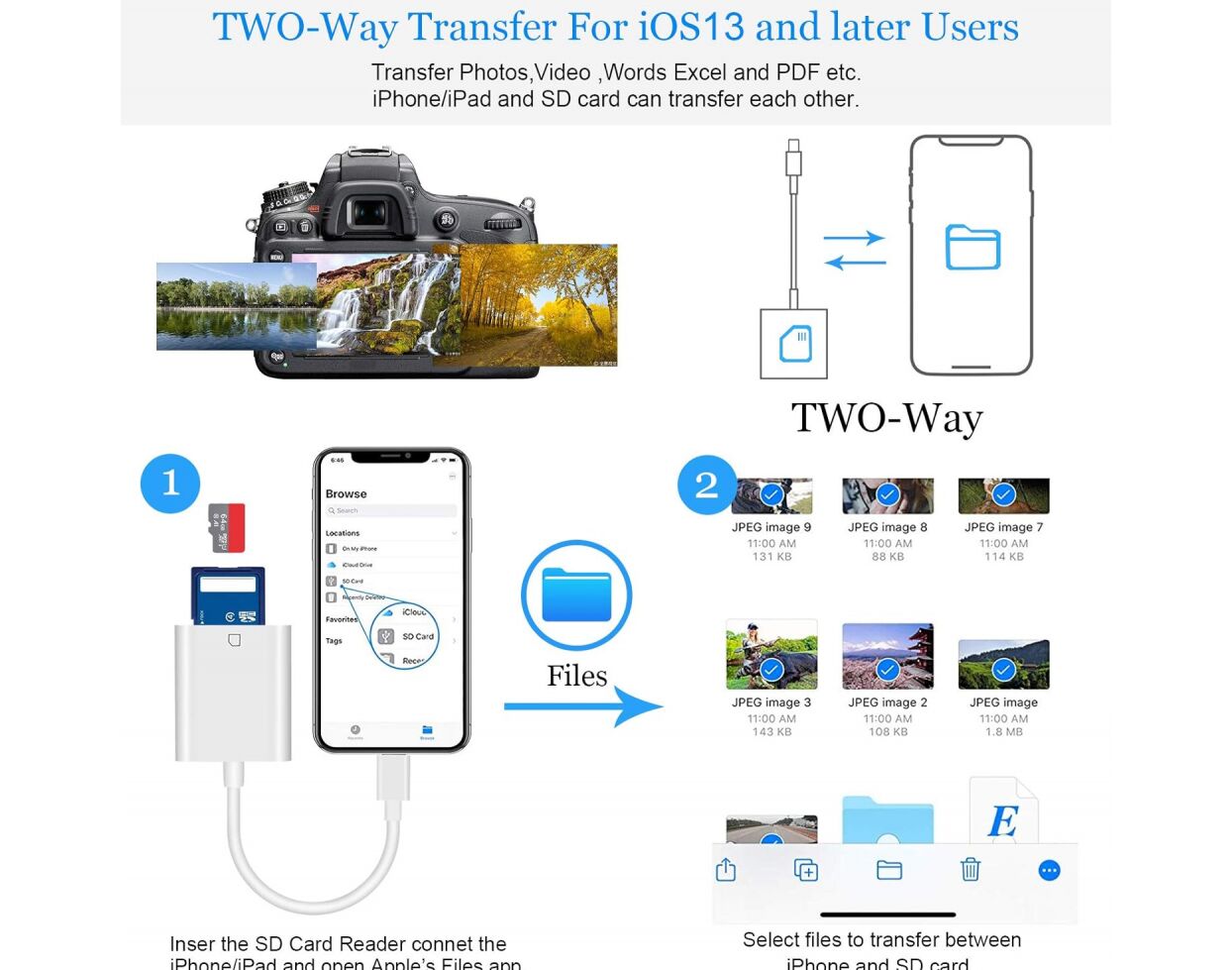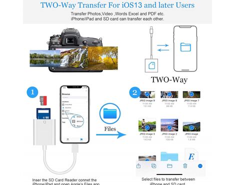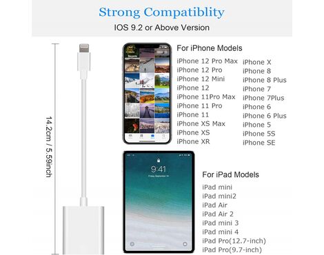 OTG adapter Lighting citac kartica TF/SD beli