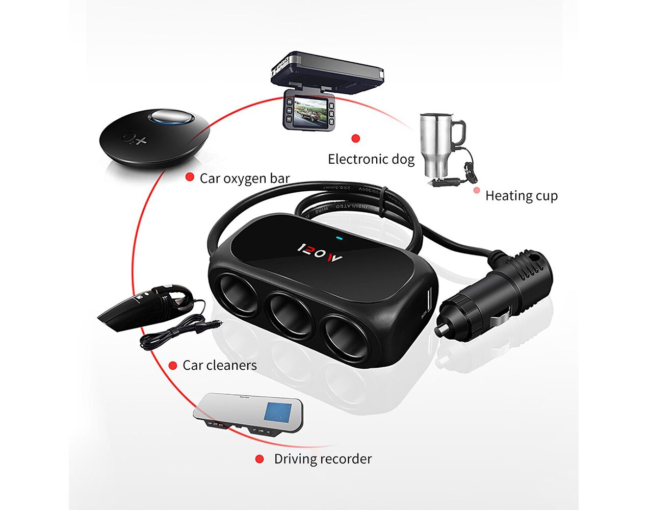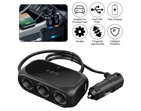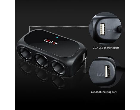 Produzni adapter - upaljac WT-D23 sa 3 rupe+2XUSB crni (MS)