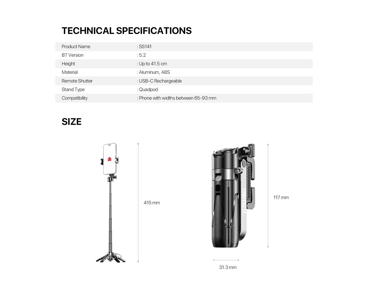 Selfie drzac/tripod P60D crni (MS)