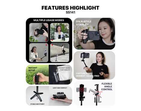 Selfie stick + tripod Pluginn PI-01 crni