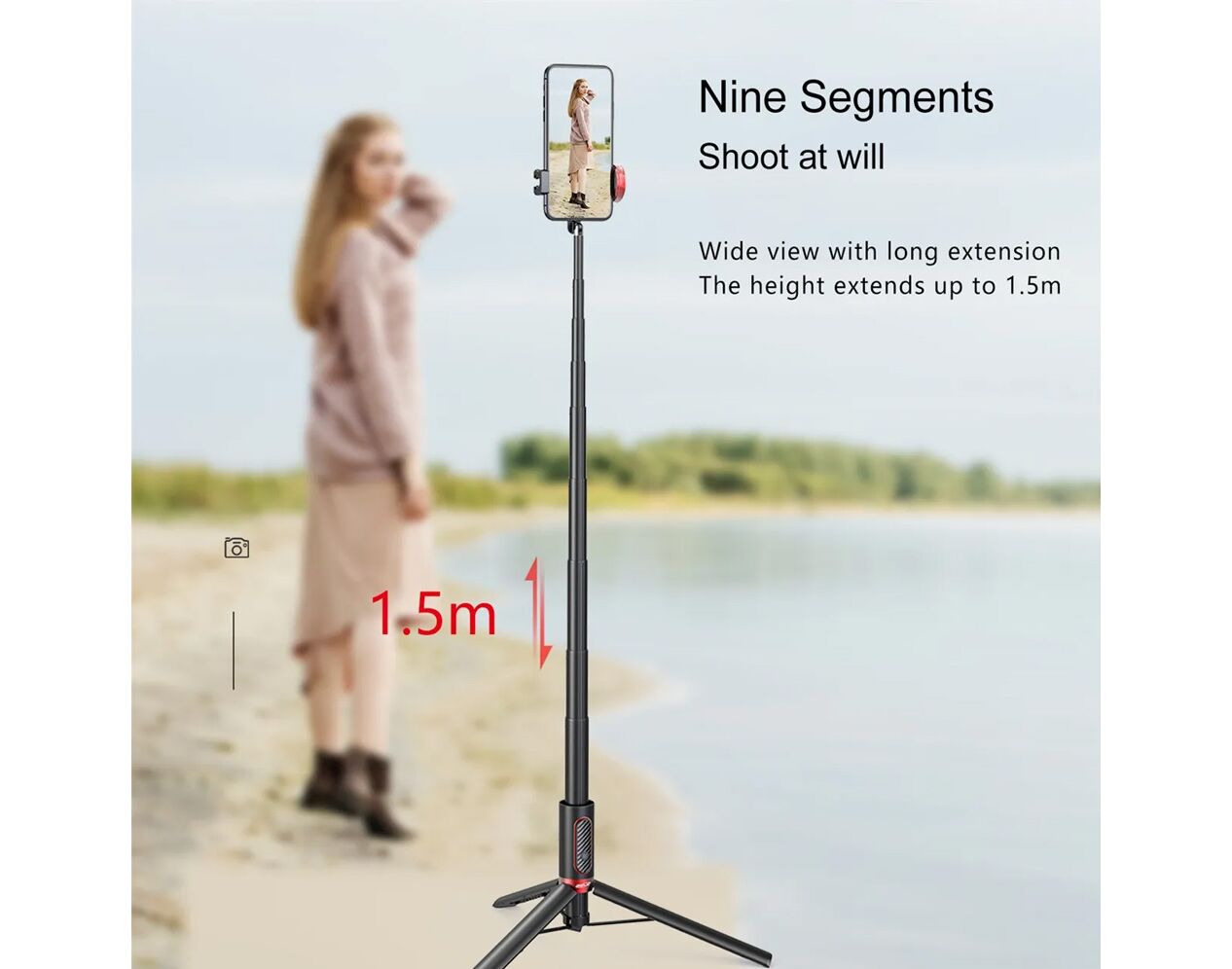 Selfie stick M18 + tripod crni/crveni