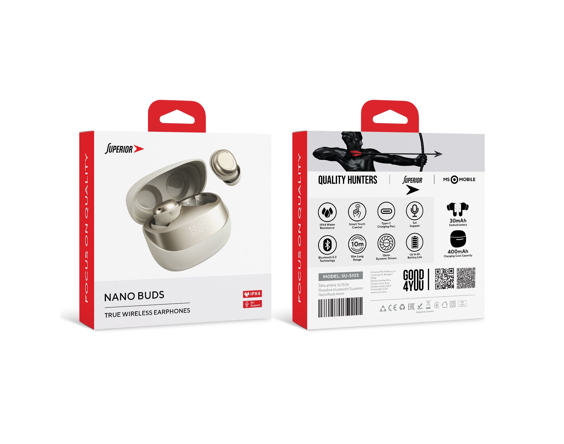 Slusalice bluetooth Superior NanoBuds krem (MS)