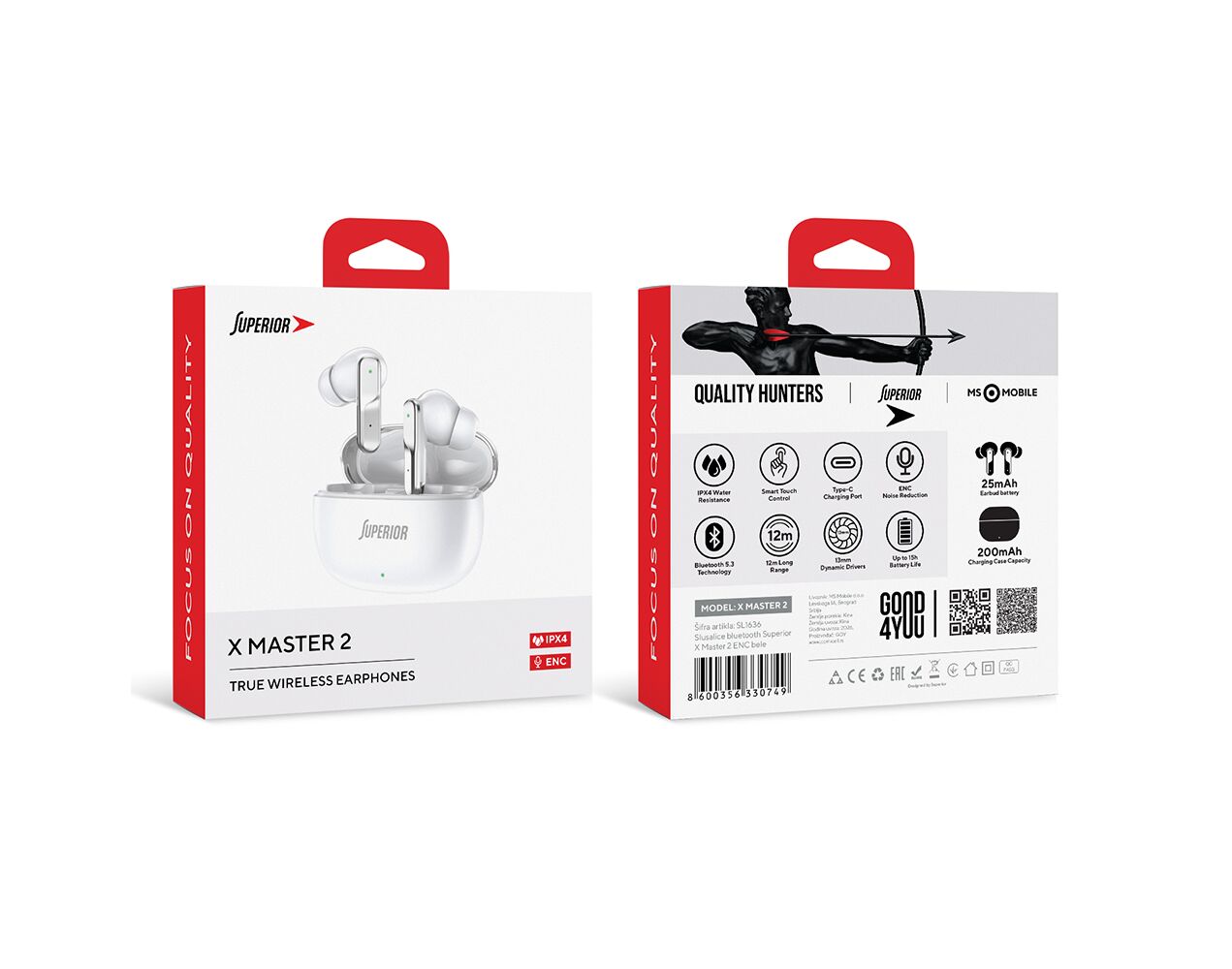 Slusalice bluetooth Superior X Master 2 ENC bele (MS)