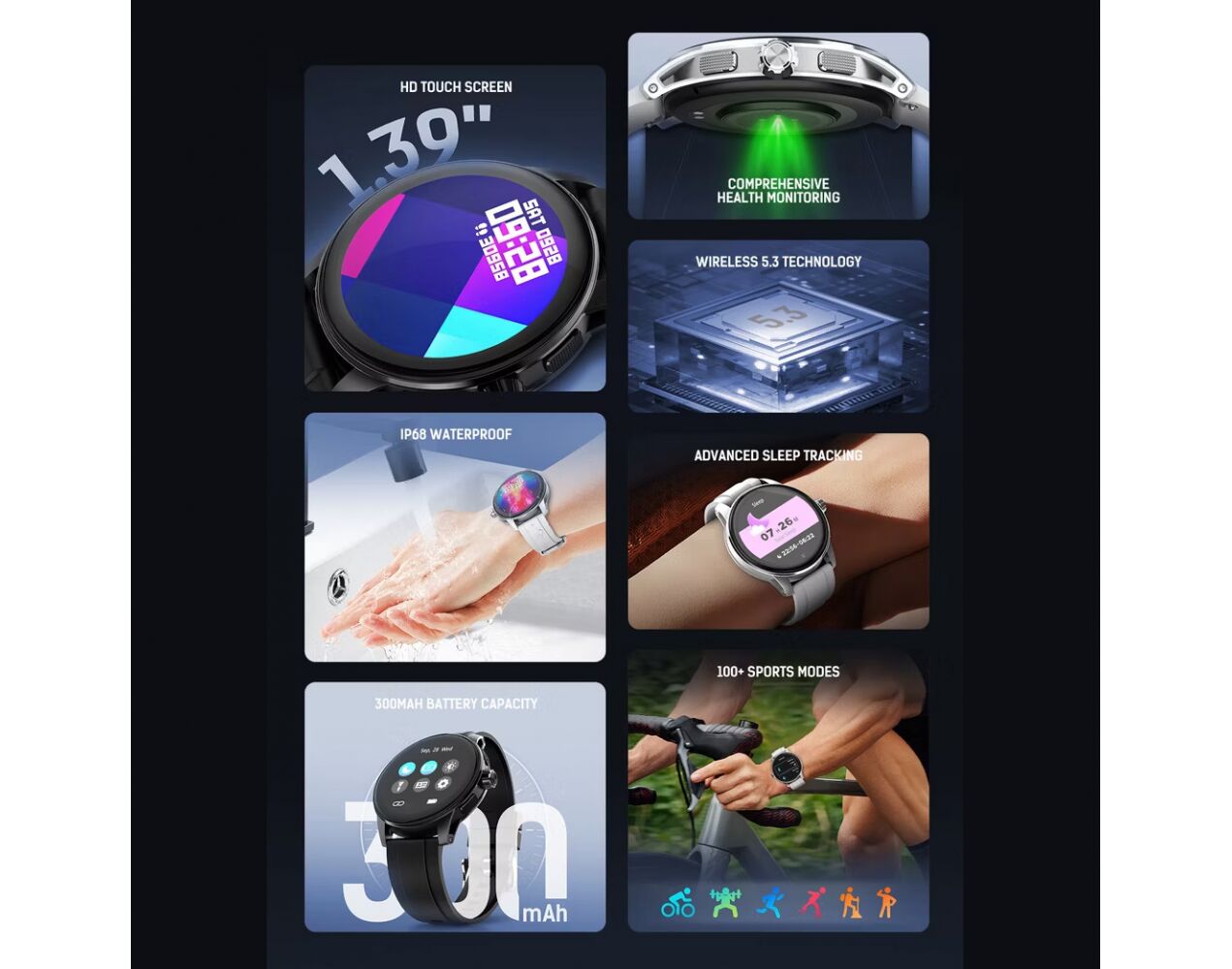 Ekran: 1.39" TFT, rezolucija 360 × 360