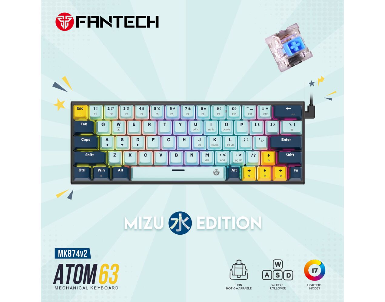 Tastatura Mehanicka Gaming Fantech MK874 RGB Atom 63 SkyBlue (Blue switch)
