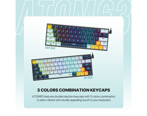Tastatura Mehanicka Gaming Fantech MK874V2 RGB Atom 63 Mizu SkyBlue (taro switch)