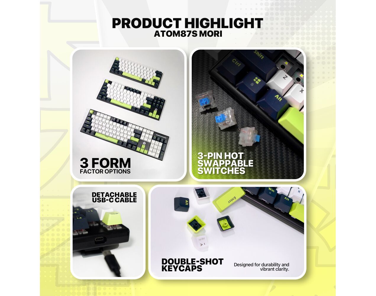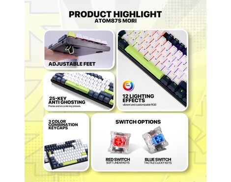 Tastatura Mehanicka Gaming Fantech MK877S RGB Atom 87S Mori plava (Blue switch)