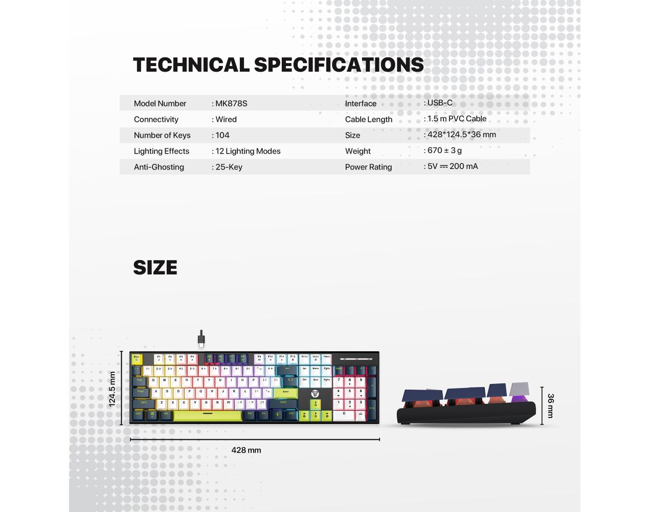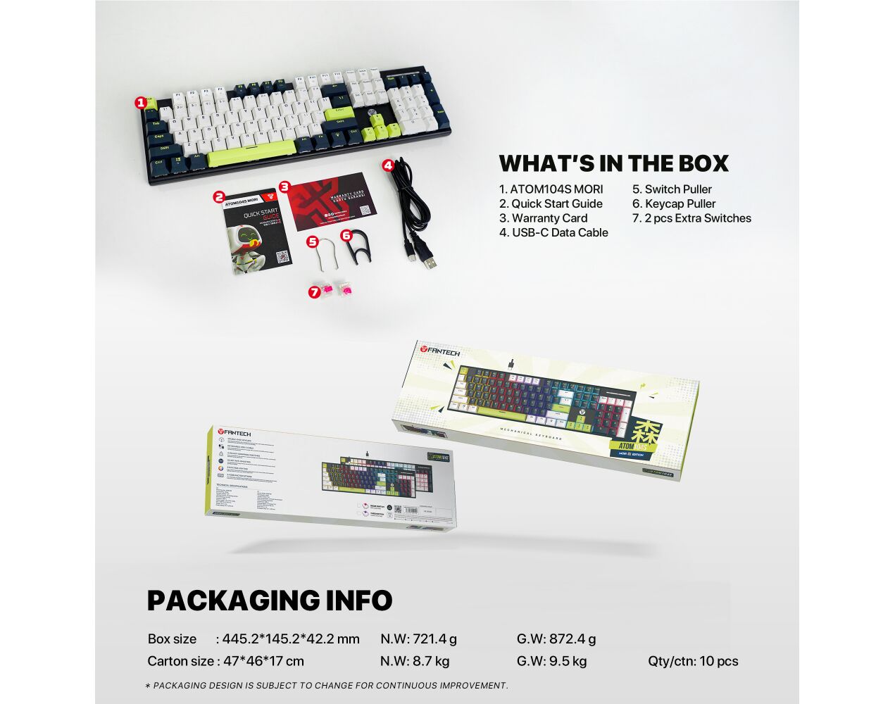Tastatura Mehanicka Gaming Fantech MK878S RGB Atom 104S Mori plava (taro switch)