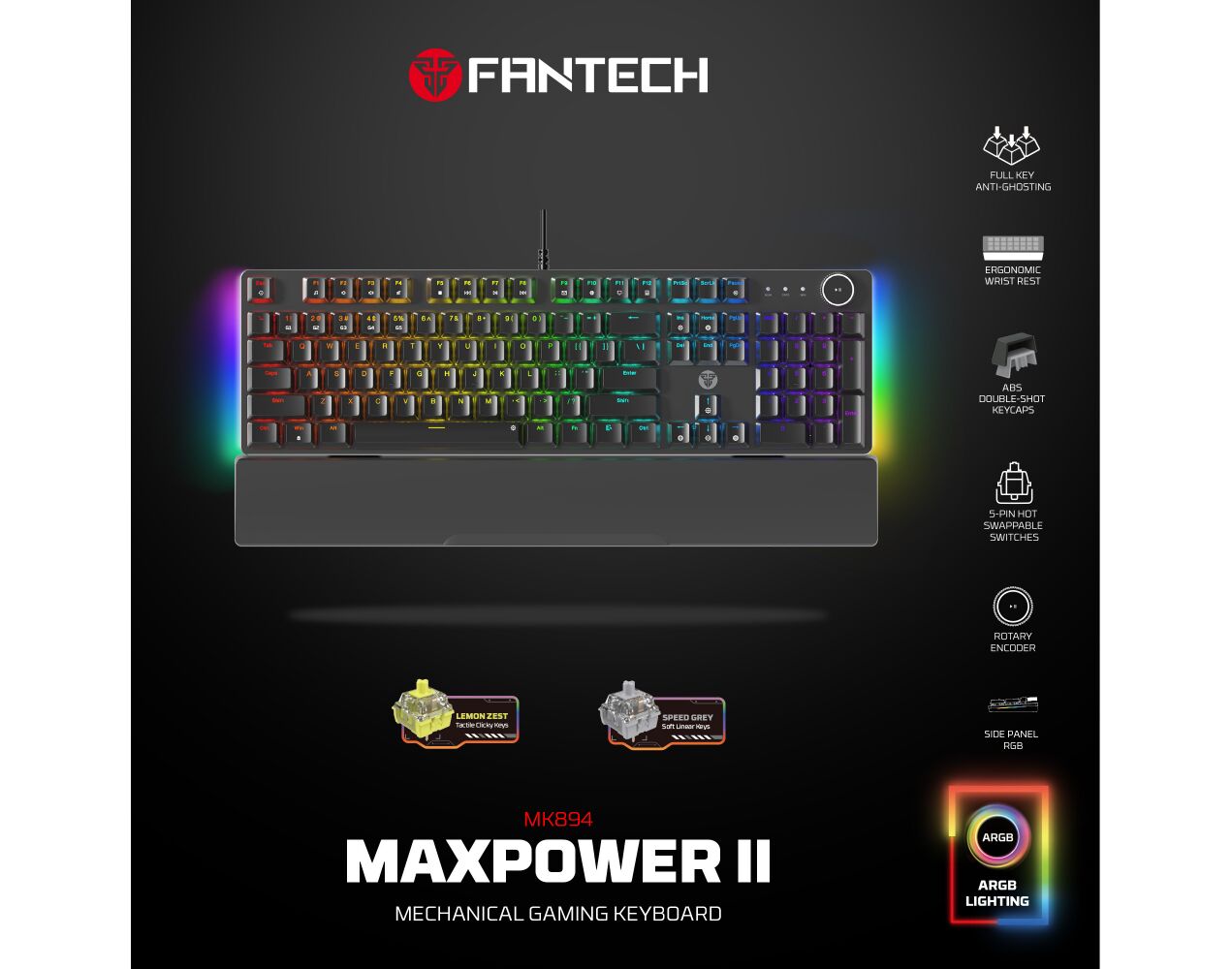 Tastatura Mehanicka Gaming Fantech MK894 RGB Maxpower II crna (speed grey switch)