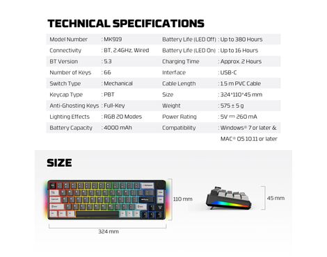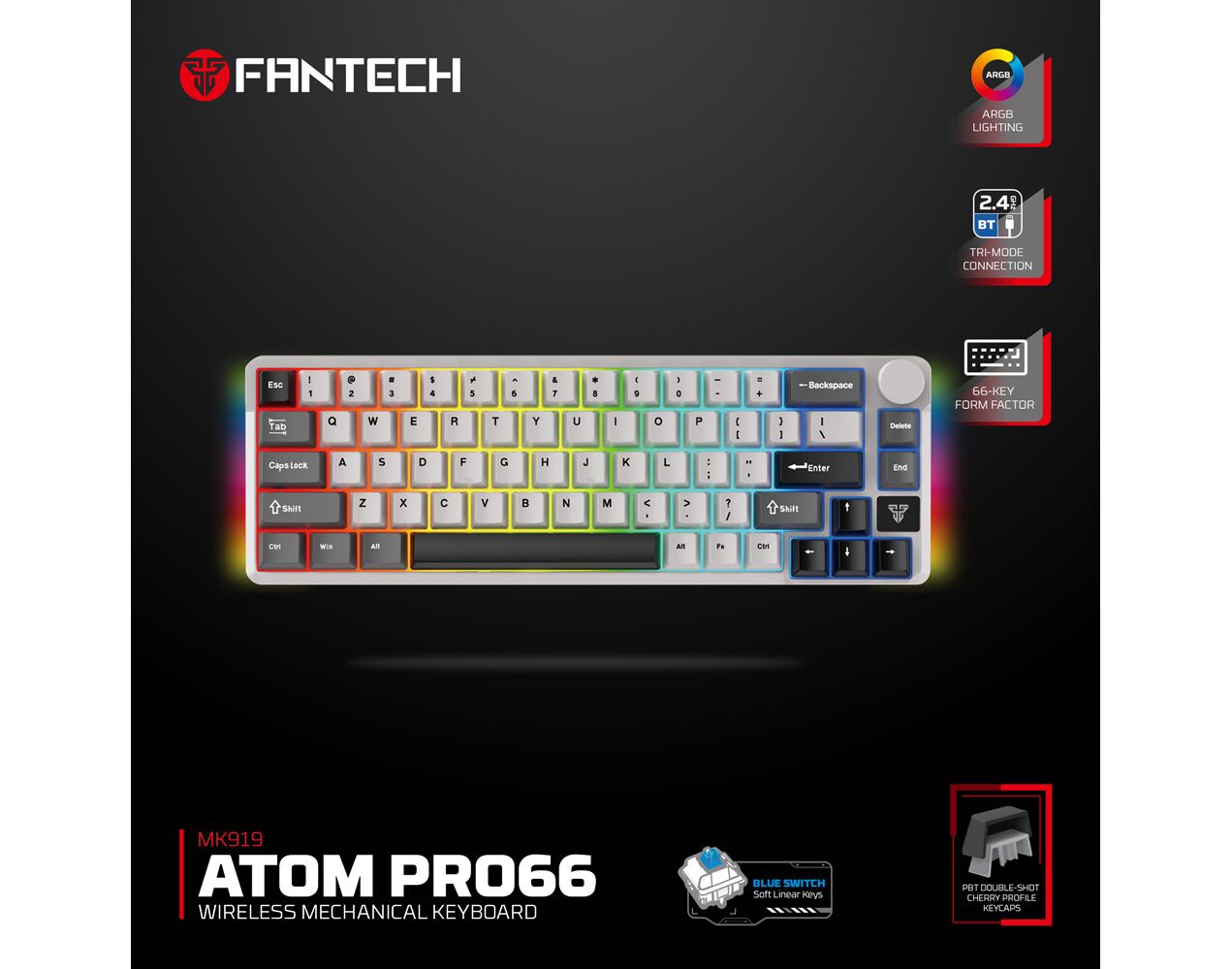 Tastatura Mehanicka Gaming Fantech MK919 Atom PRO66 siva (Blue switch)