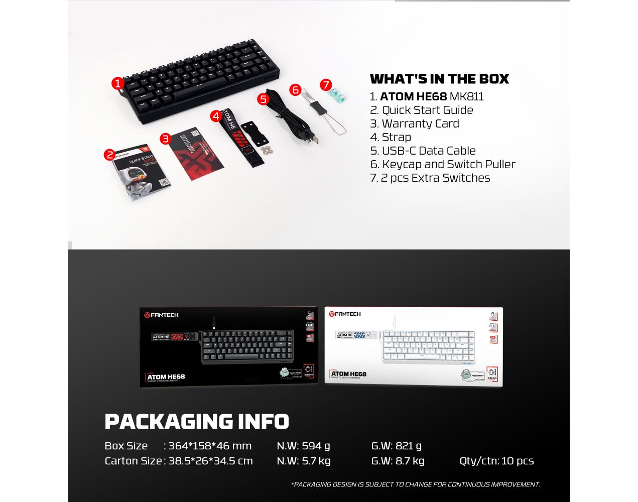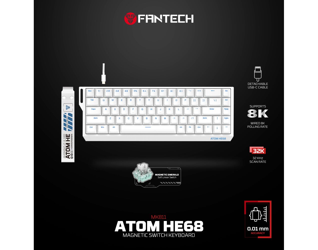 Tastatura Wired Magnetic Gaming Fantech MK811 RGB Atom HE68 bela (emerald switch)