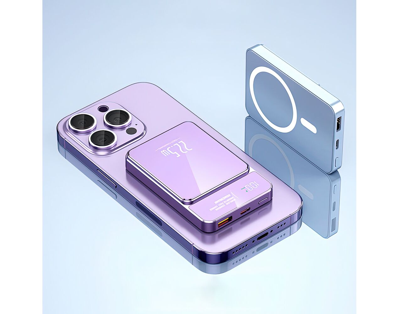 Univerzalna Back Up Baterija MagSafe M100 15W PD 20W+22.5W Fast 10000mAh ljubicasti (MS)