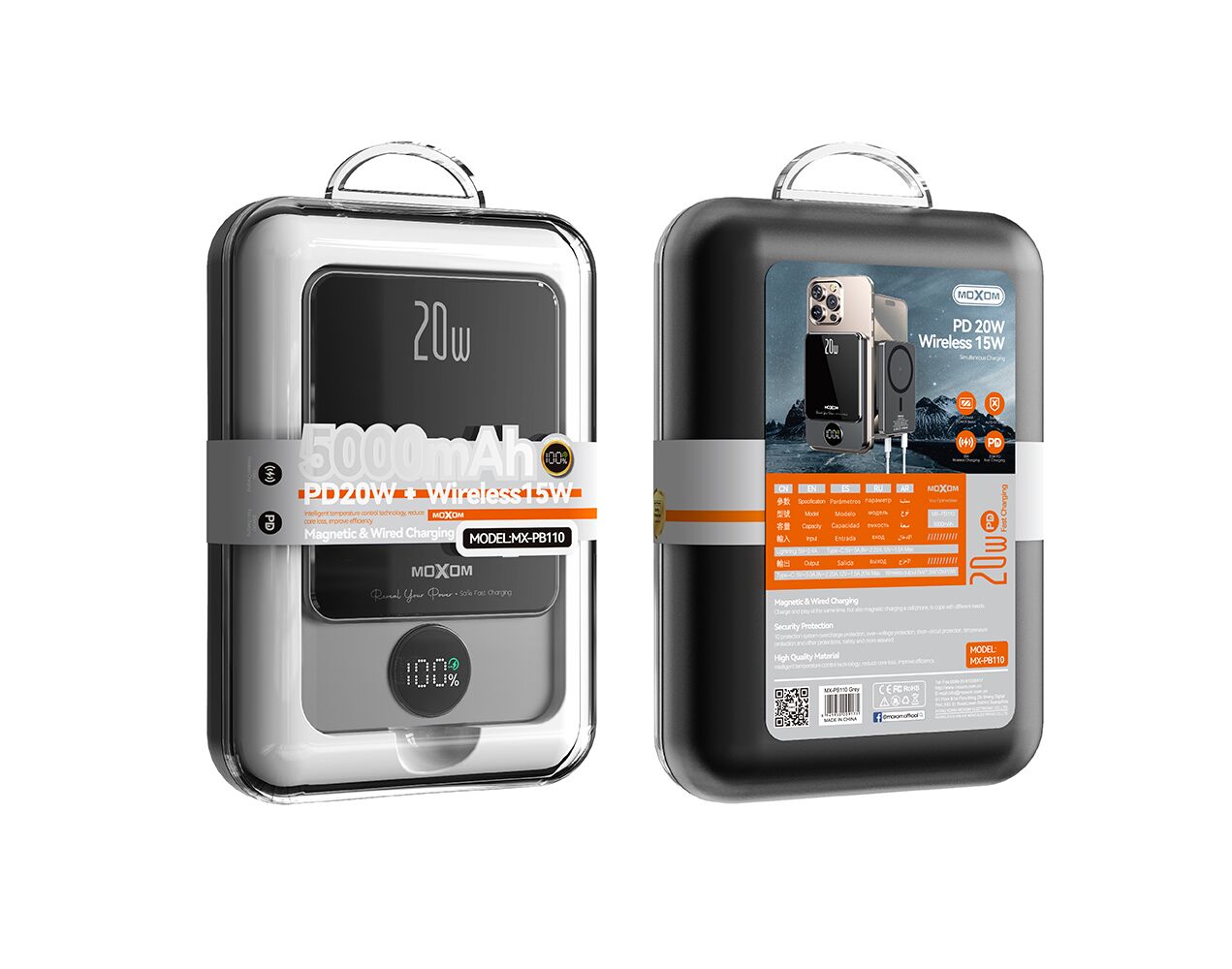 Univerzalna Back Up Baterija MagSafe Moxom MX-PB110 LED PD20W 5000mAh crni (MS)