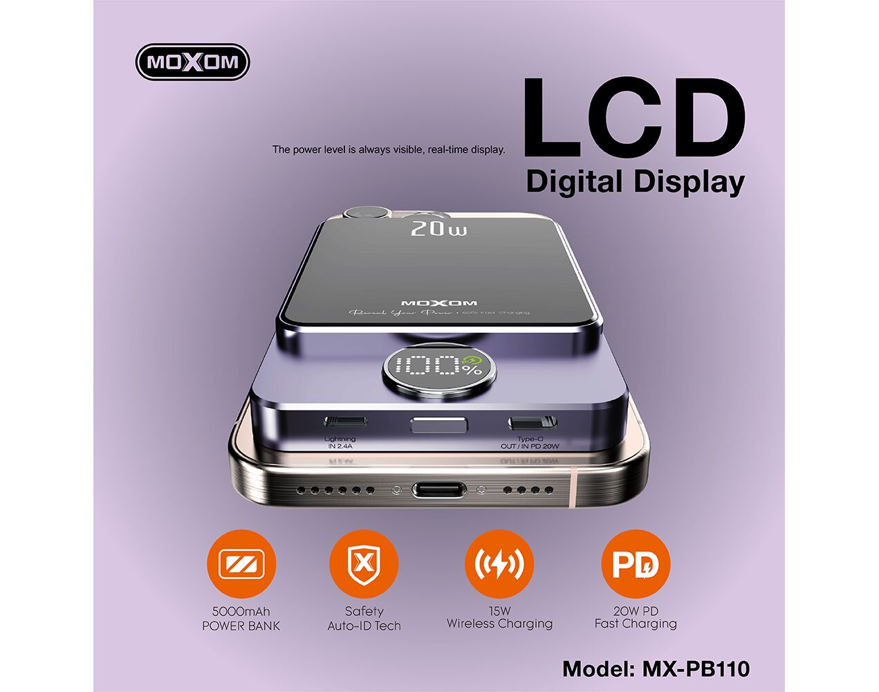 Univerzalna Back Up Baterija MagSafe Moxom MX-PB110 LED PD20W 5000mAh zeleni (MS)