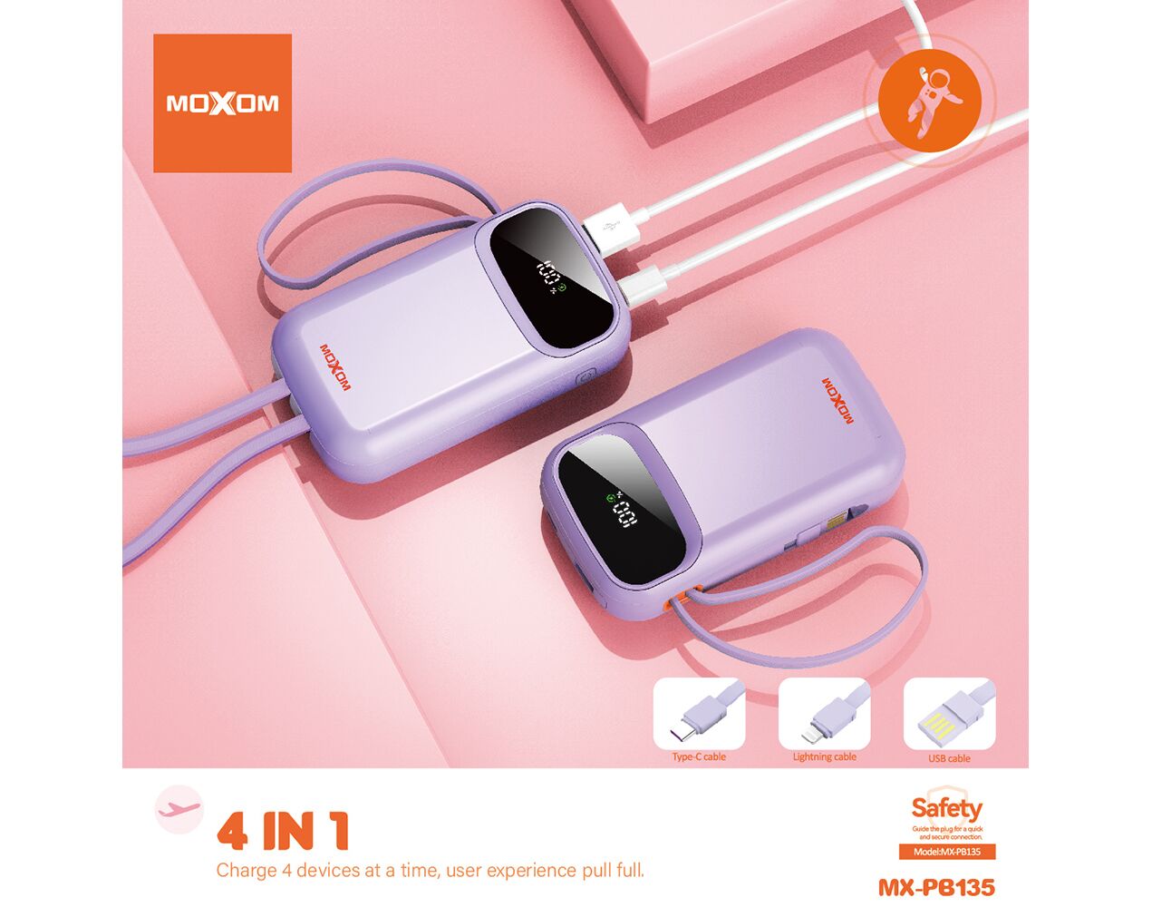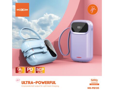 Univerzalna Back Up Baterija Moxom MX-PB135 fast 20000mAh QC22.5W+ PD20W 2.4A ljubicasti (MS)