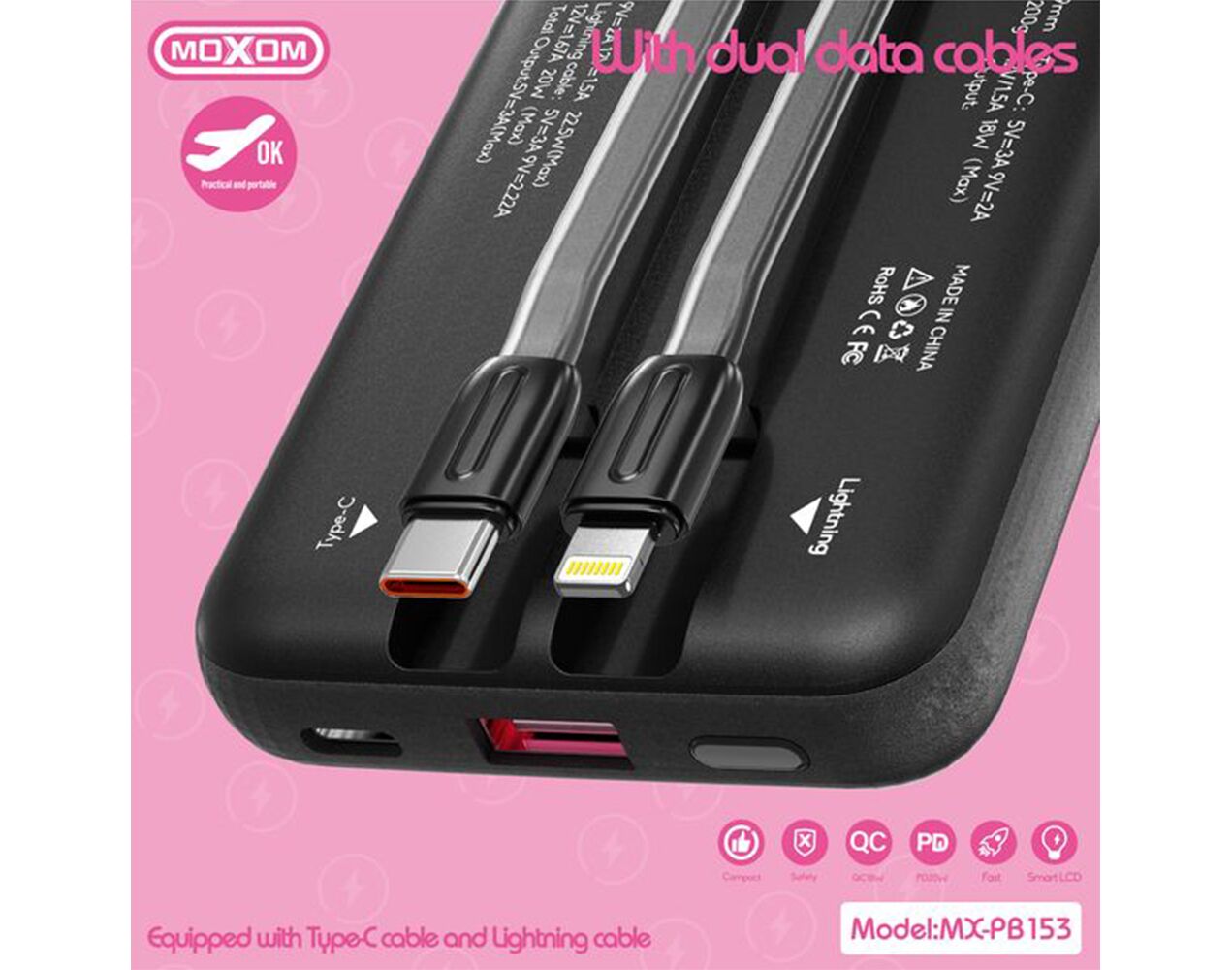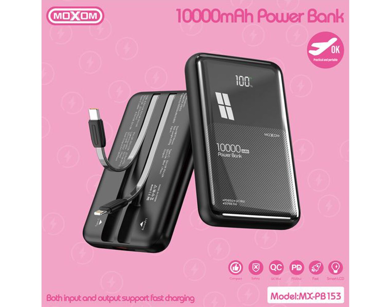 - Type-C kabl: 4.5V/5A, 5V/3A, 9V/2A, 12V/1.5A, 22.5W (Maksimalno)
