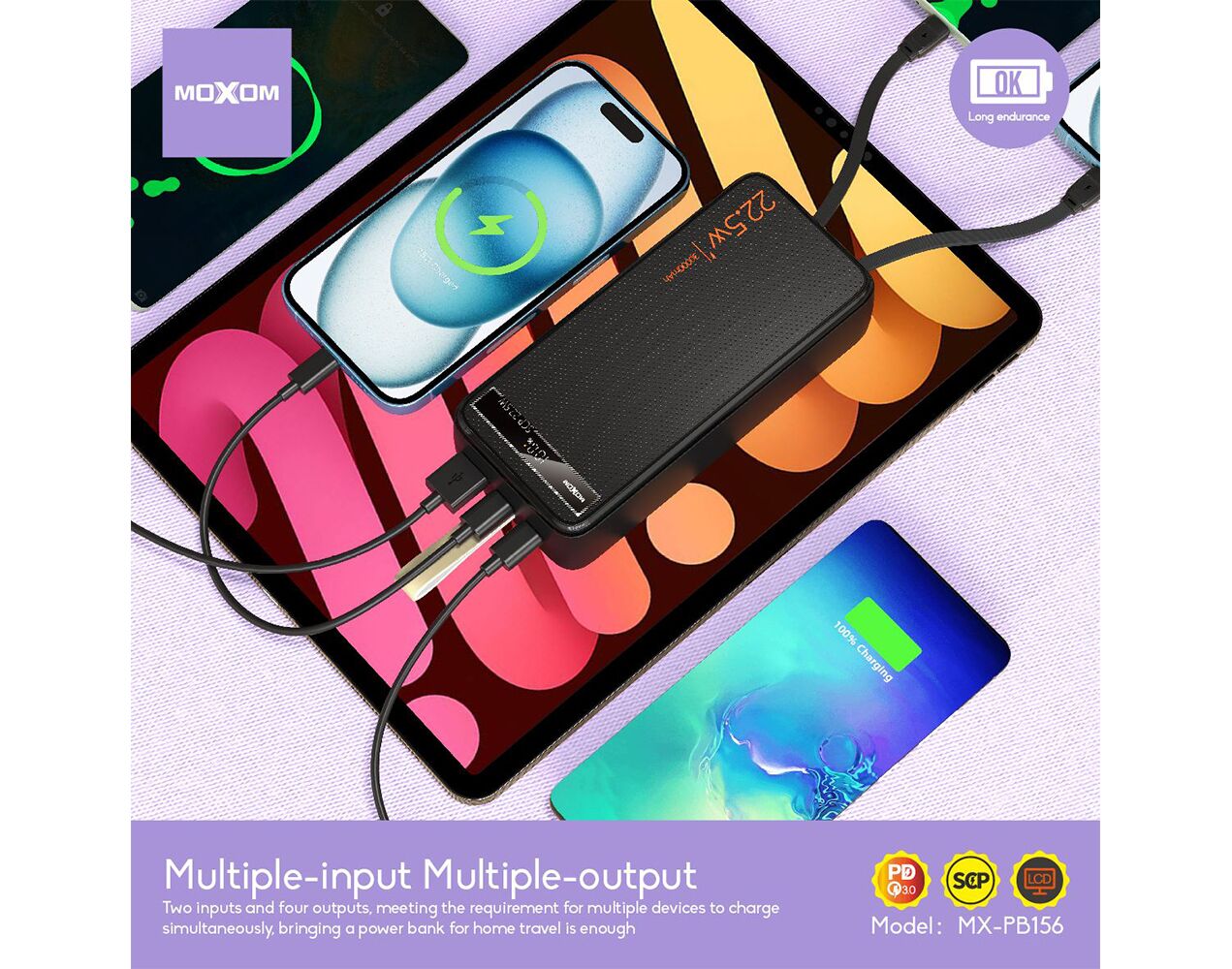 - USB: 5V/3A, 9V/2.22A, 12V/1.67A, SCP 4.5V/5A ili 5V/4.5A ±0.3A (Max 22.5W)