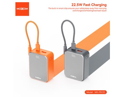 Univerzalna Back Up Baterija Moxom MX-PB195 Mini fast 22.5W Type C - lightning 10000mAh sivi (MS)