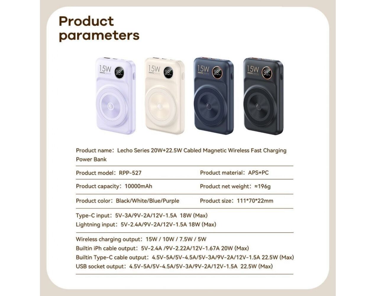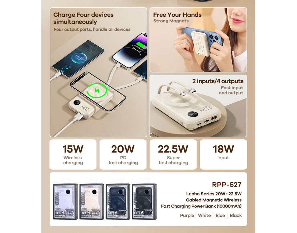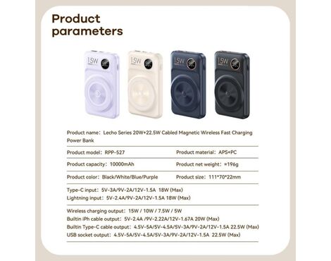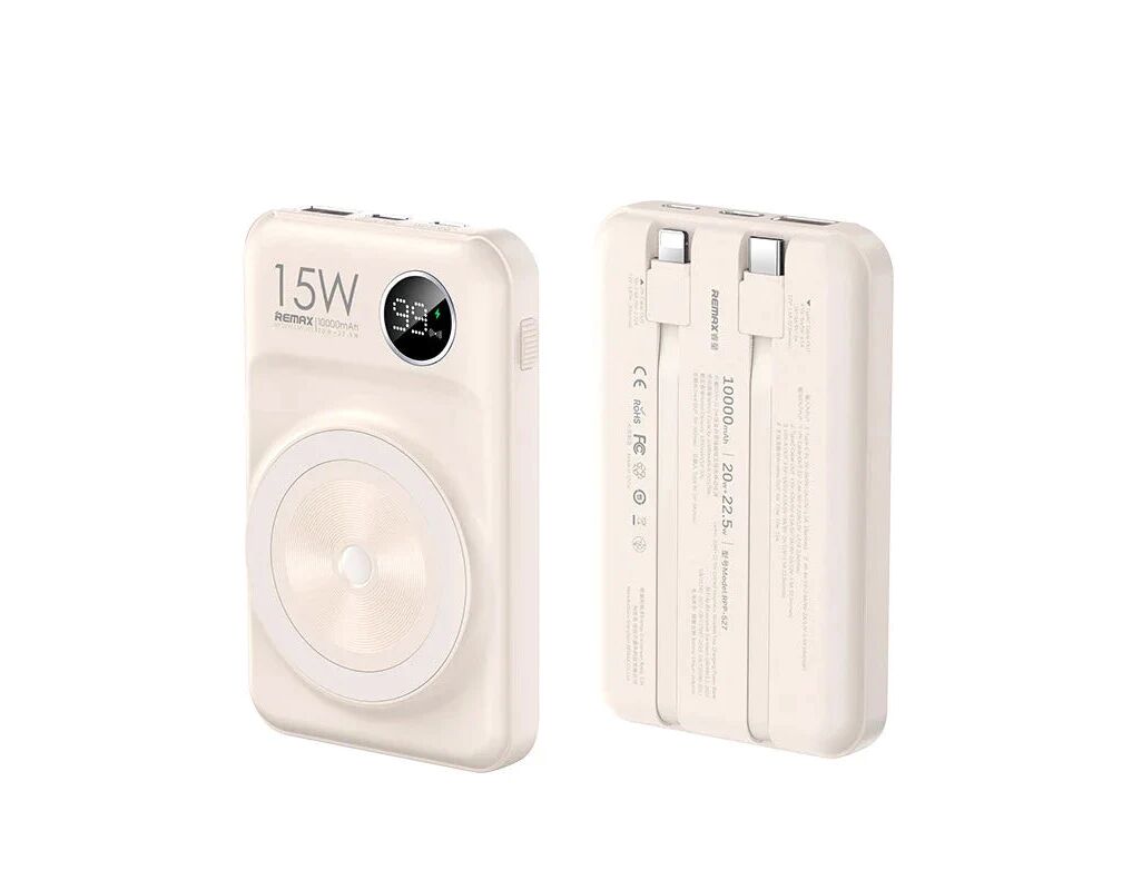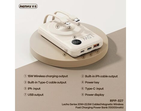 Univerzalna Back Up Baterija prenosiva baterija Magsafe REMAX Lecho Series RPP-527 PD 20W + QC 22.5W Fast Charging 10000mAh beli