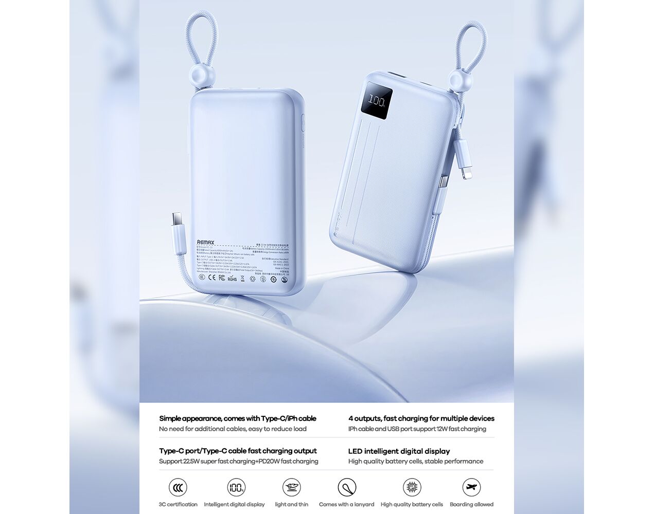 * Baterijske ćelije visokog kvaliteta, bez pregrevanja, stabilnih performansi, bezbedan za upotrebu u avionu;