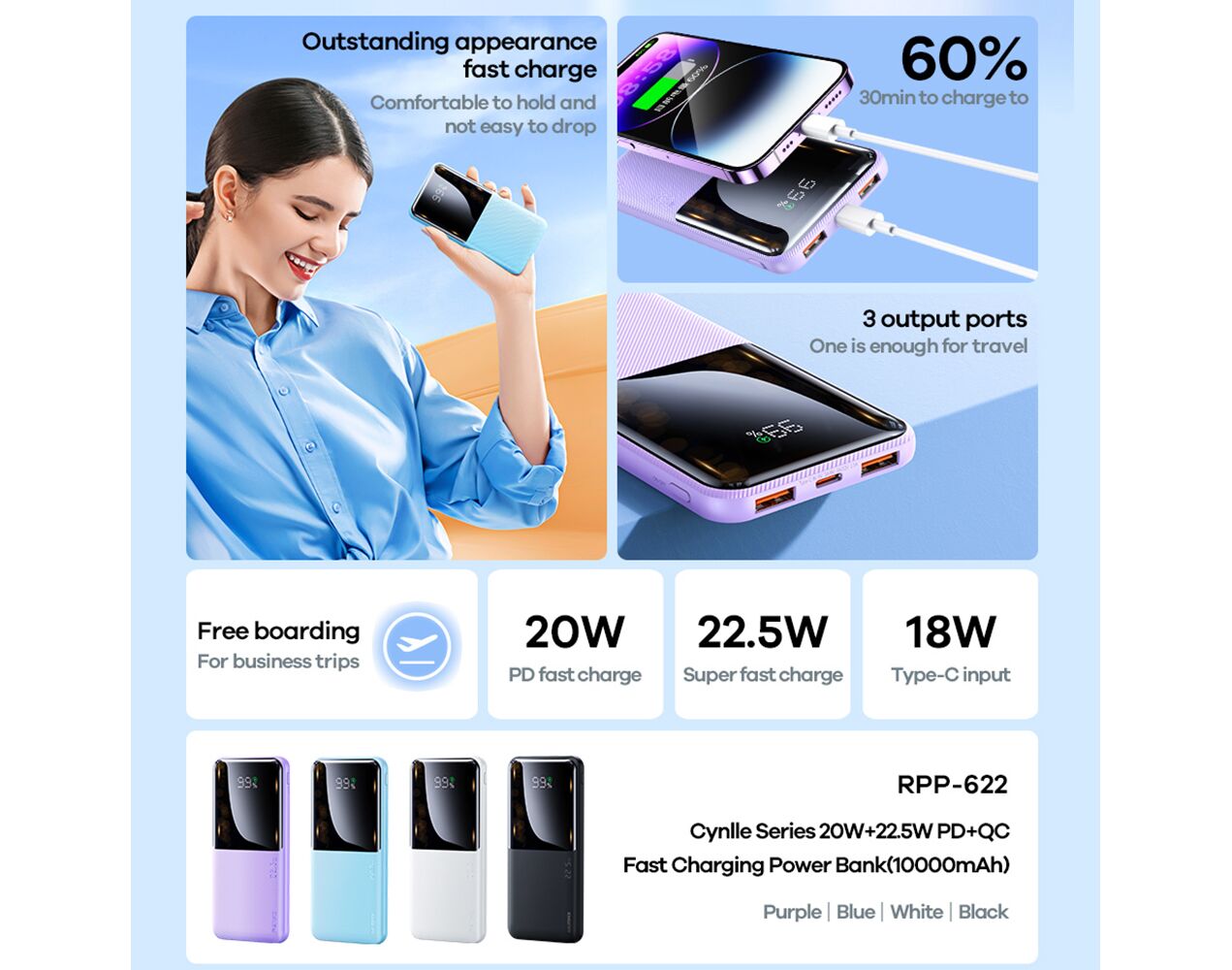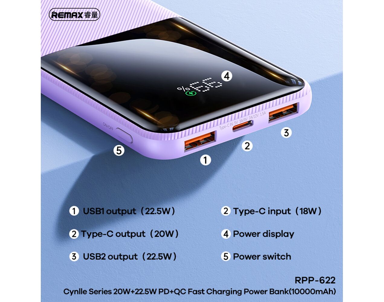 Voltaža izlaza: USB1/USB2: 4.5v-5A/5V-4.5A/5V-3A/9V-2A/12V-1.5A 22.5W(Max)