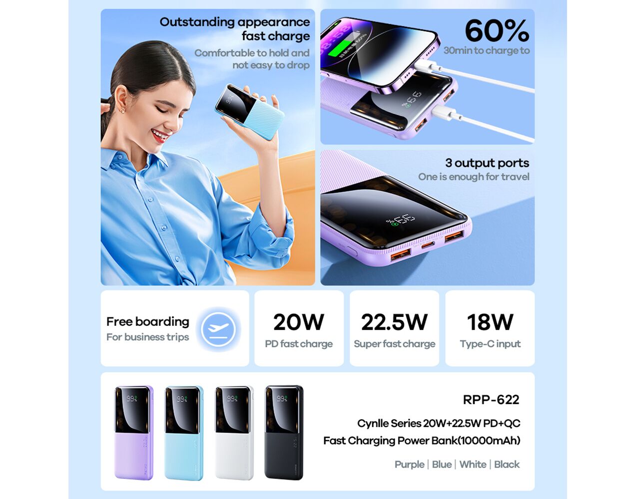 Voltaža izlaza: USB1/USB2: 4.5v-5A/5V-4.5A/5V-3A/9V-2A/12V-1.5A 22.5W(Max)
