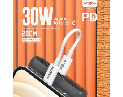 USB data kabl Moxom MX-CB127 Type C na Lightning PD 30W 20cm beli (MS)