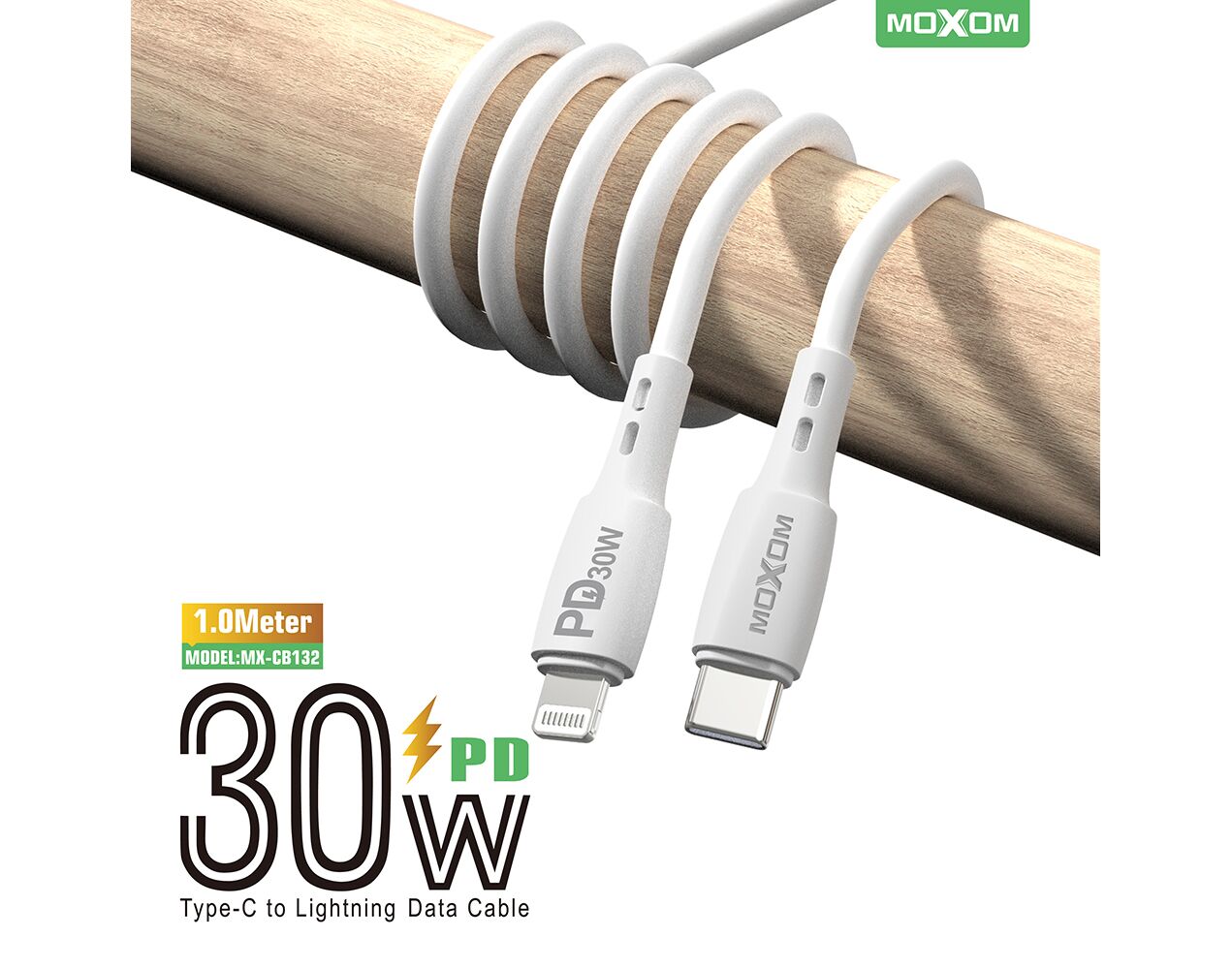 USB data kabl Moxom MX-CB132 PD 30W Type-C na lightning 1m beli (MS)