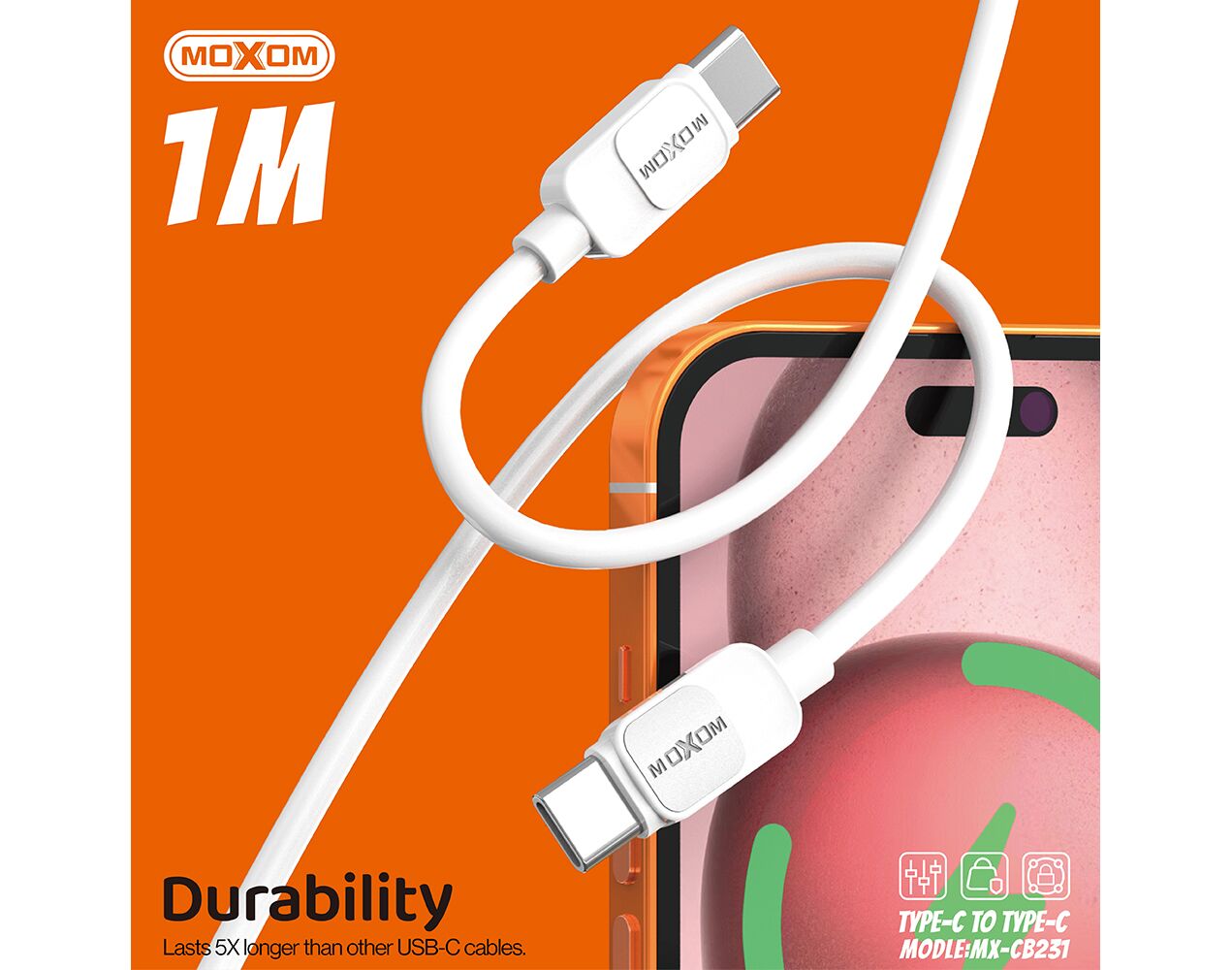 U2003 USB data kabal Comicell Superior CO-BX19 Fast 60W 3A Type C na Type C 1m beli