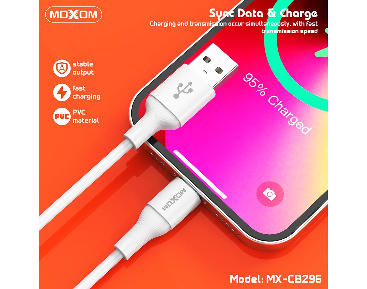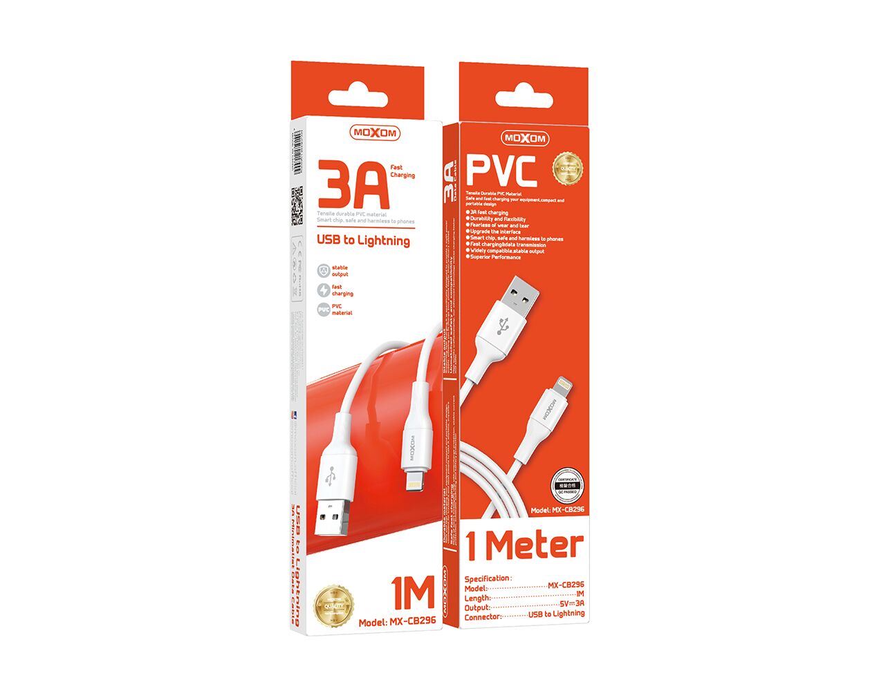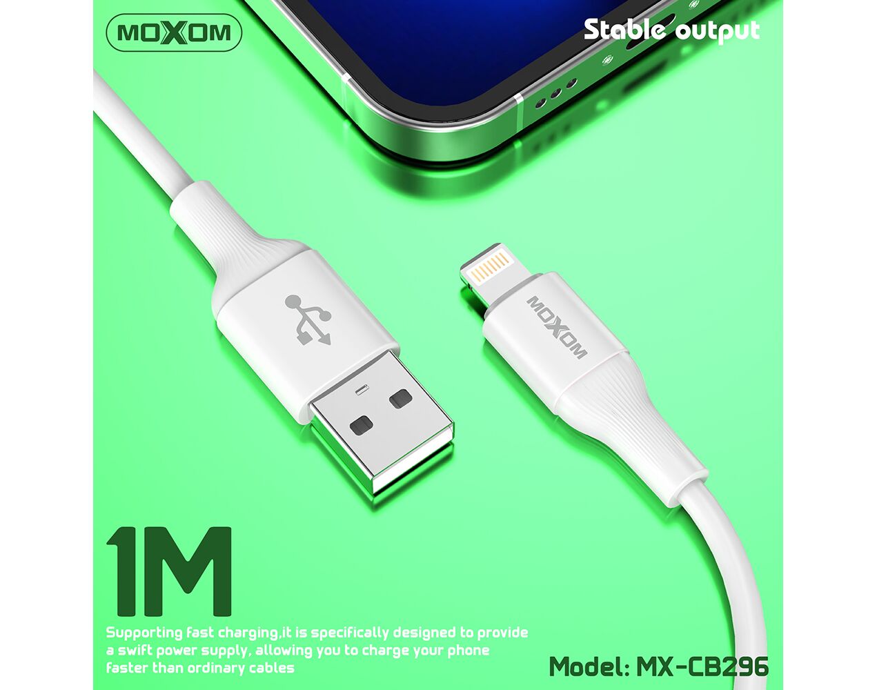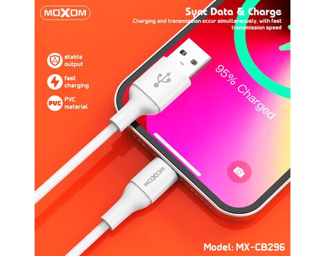 USB data kabl Moxom MX-CB296 3A Lightning beli (MS)