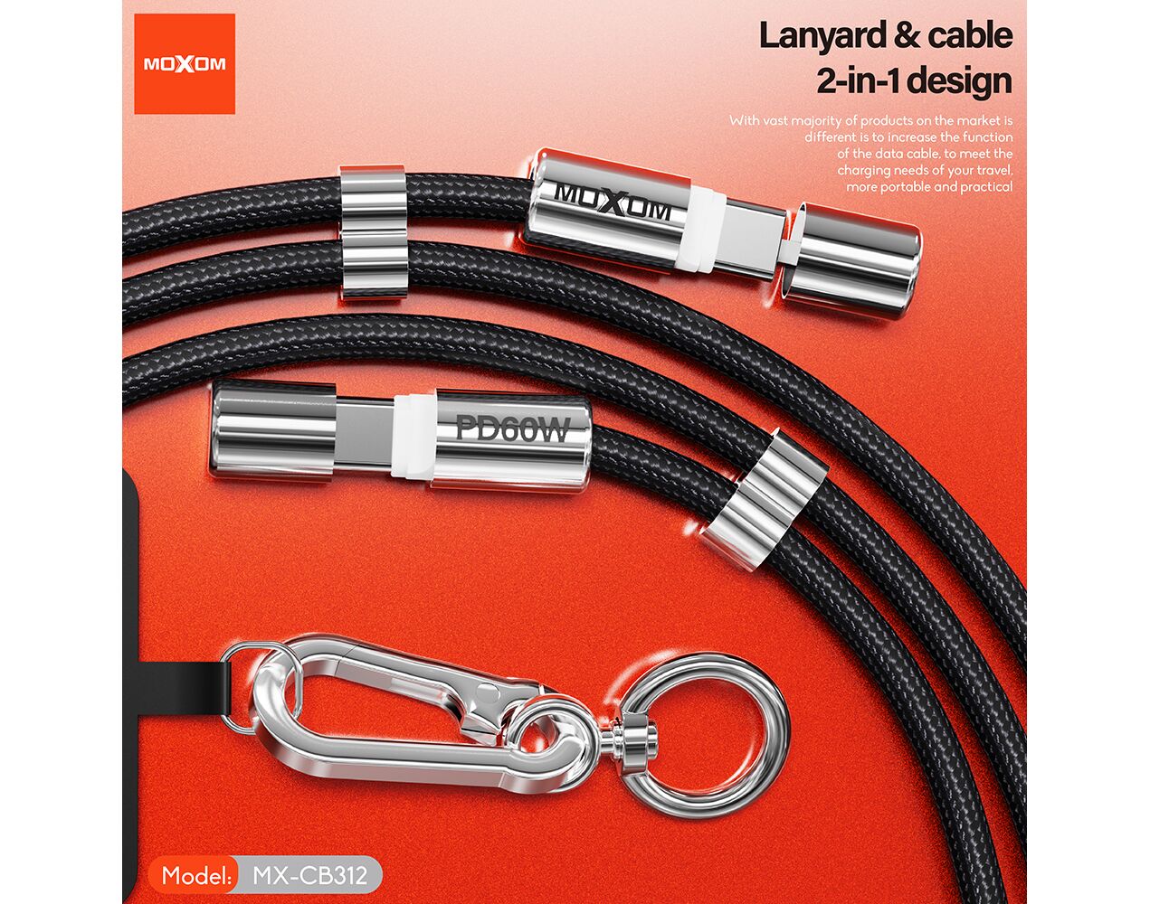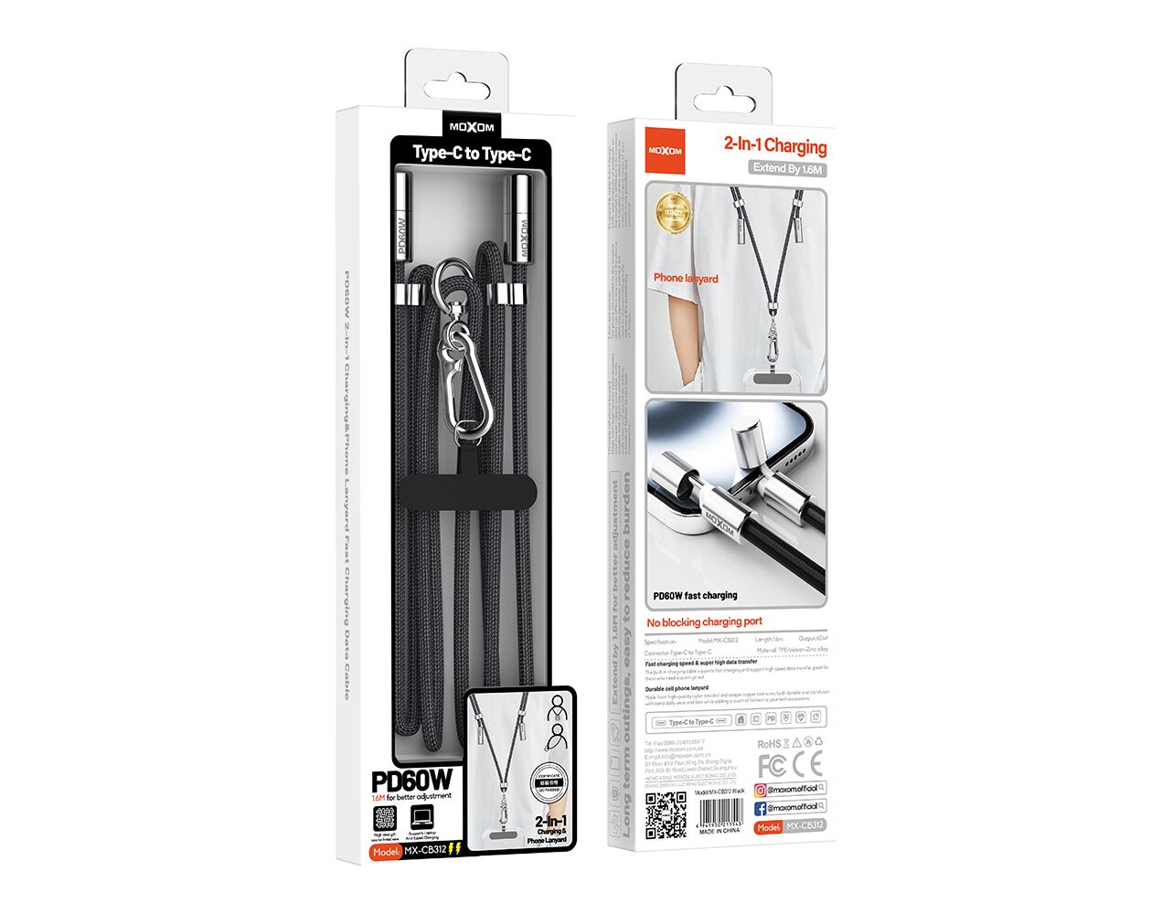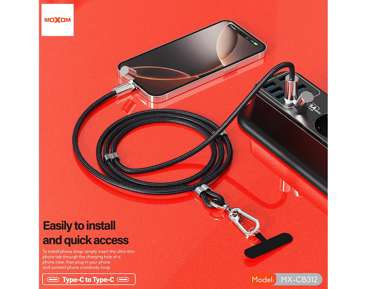 USB data kabl Moxom MX-CB312 Type C na Type C strap crni (MS)