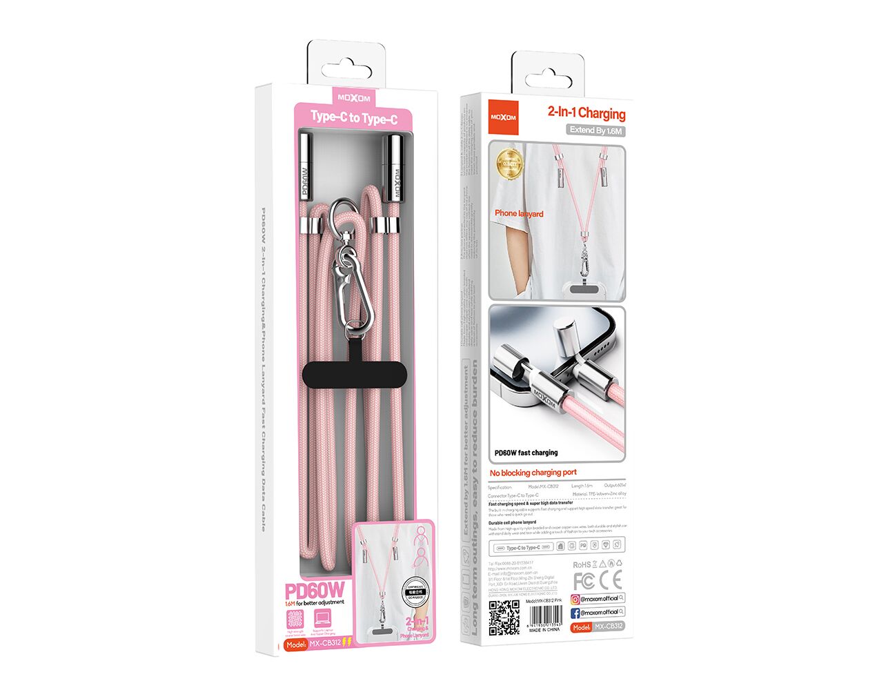 USB data kabl Moxom MX-CB312 Type C na Type C strap pink (MS)