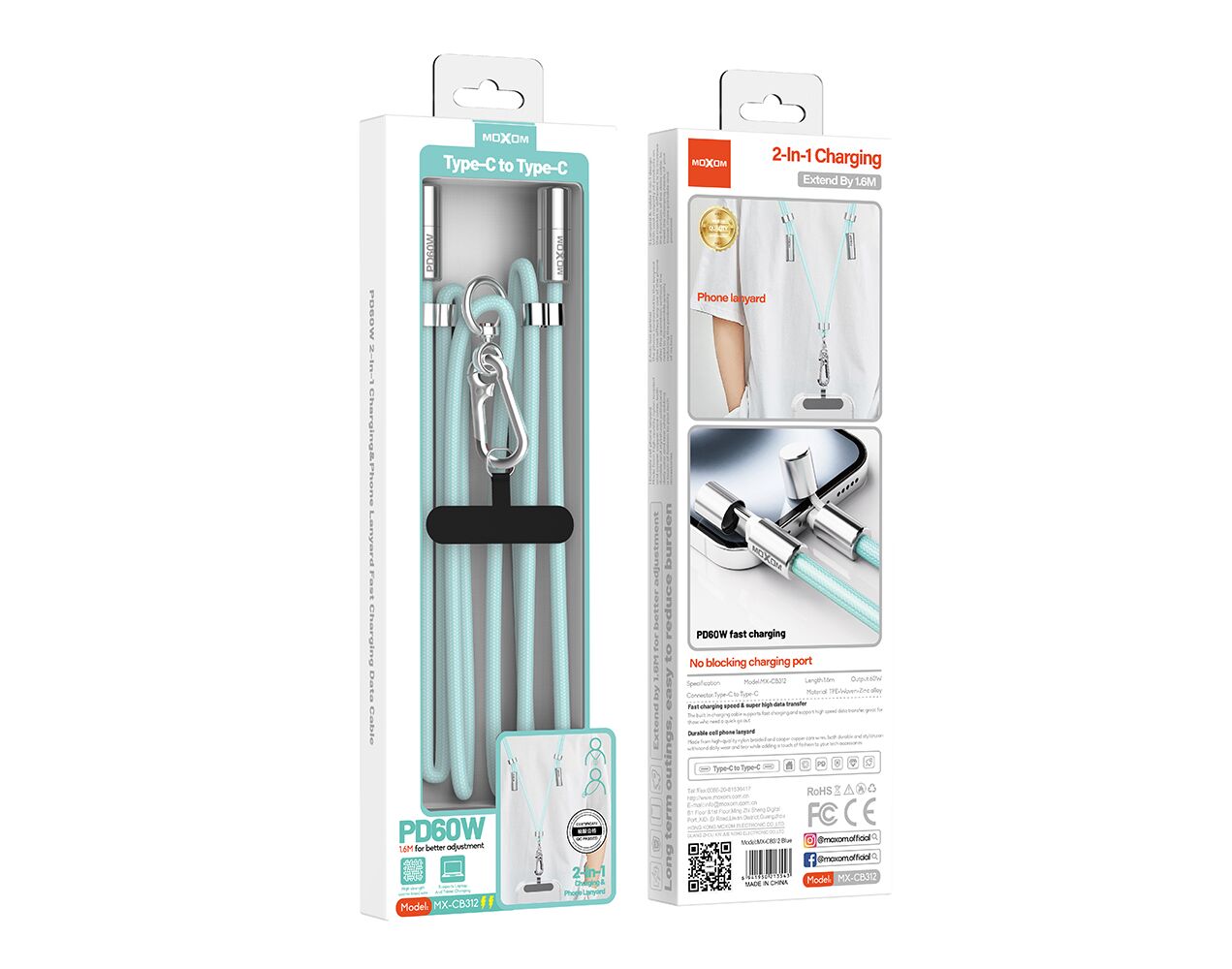USB data kabl Moxom MX-CB312 Type C na Type C strap plavi (MS)