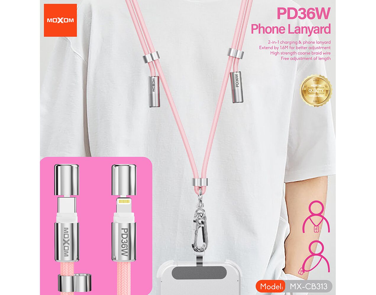 USB data kabl Moxom MX-CB313 Type-C to Lightning strap plavi (MS)