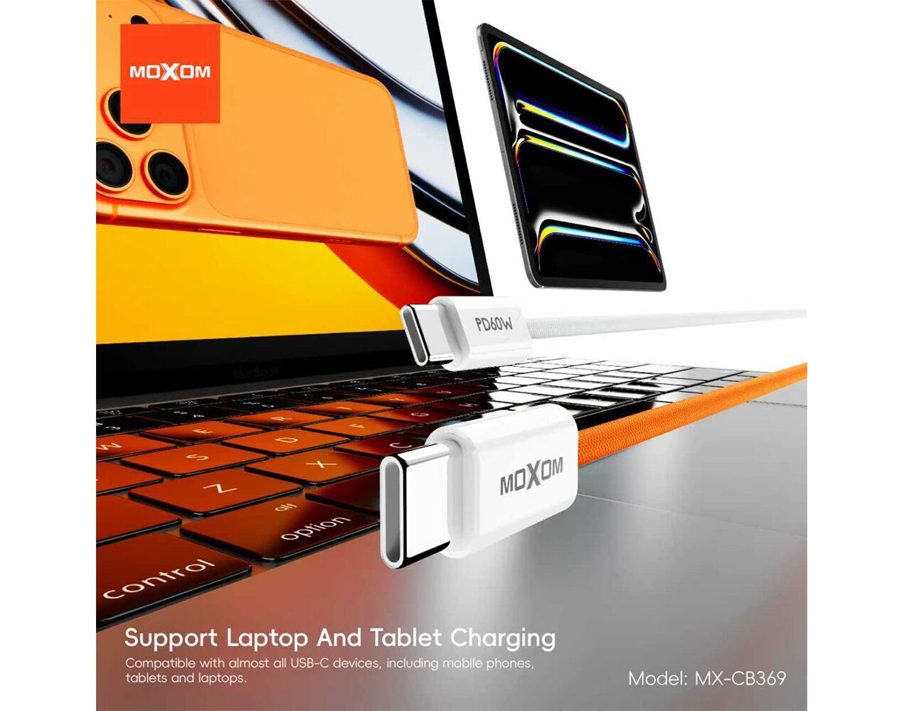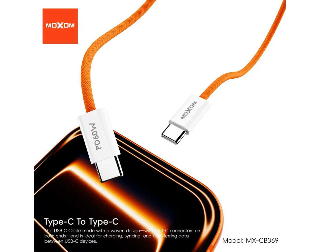USB data kabl MOXOM MX-CB369 pleteni Fast 60W 3A Type-C na Type-C 1m beli (MS)