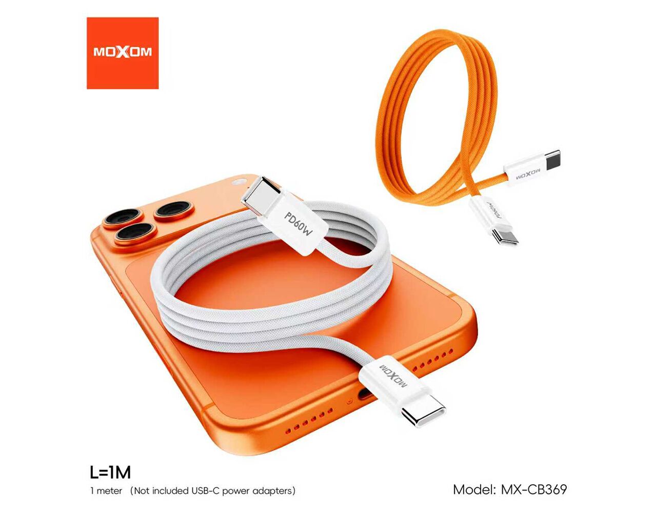 USB data kabl MOXOM MX-CB369 pleteni Fast 60W 3A Type-C na Type-C 1m narandzasti (MS)