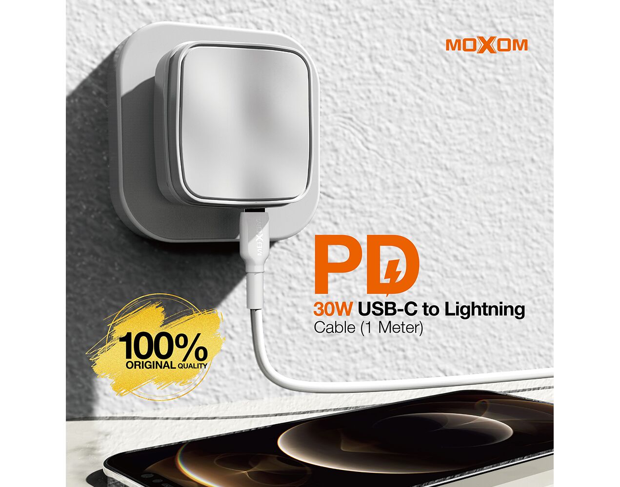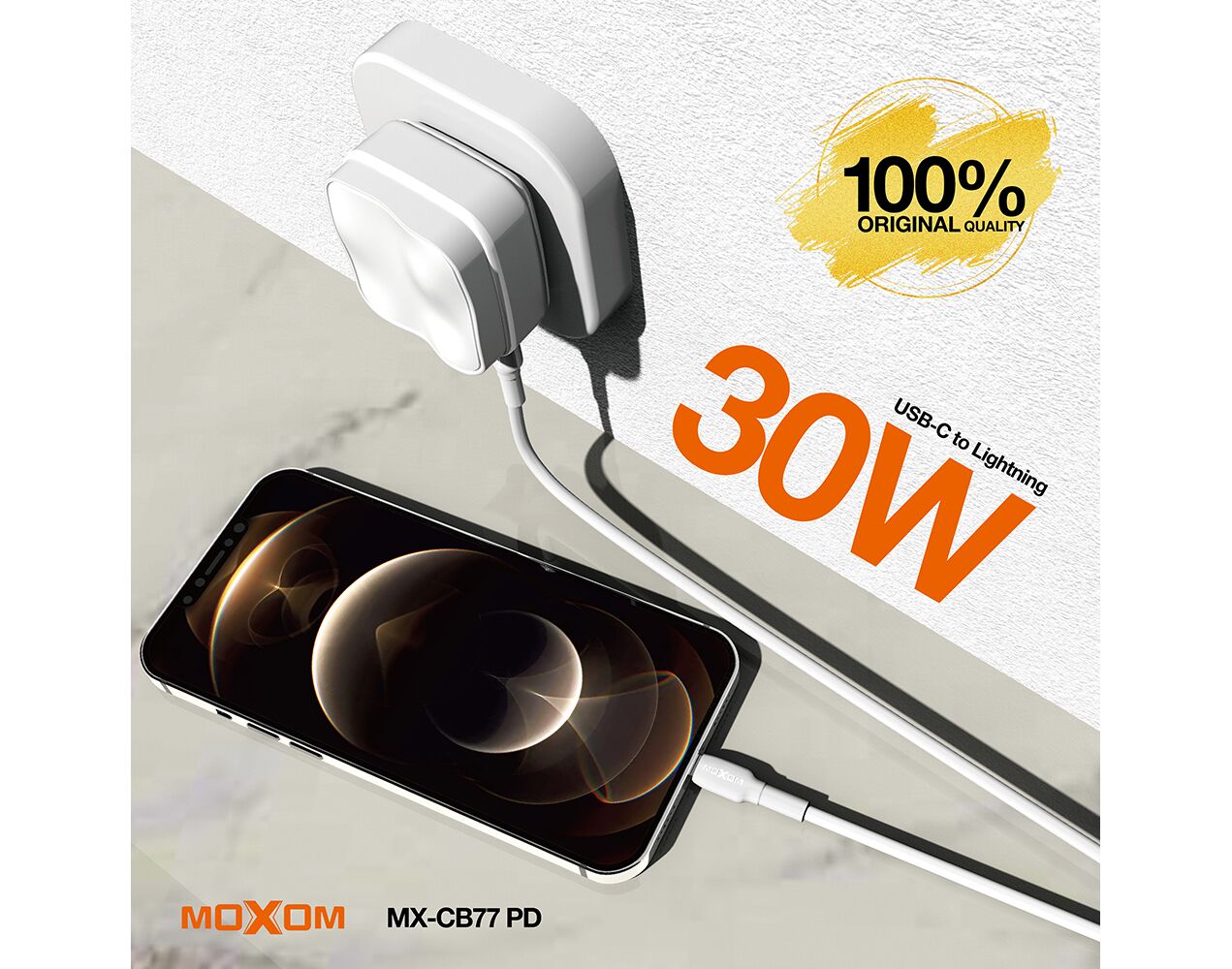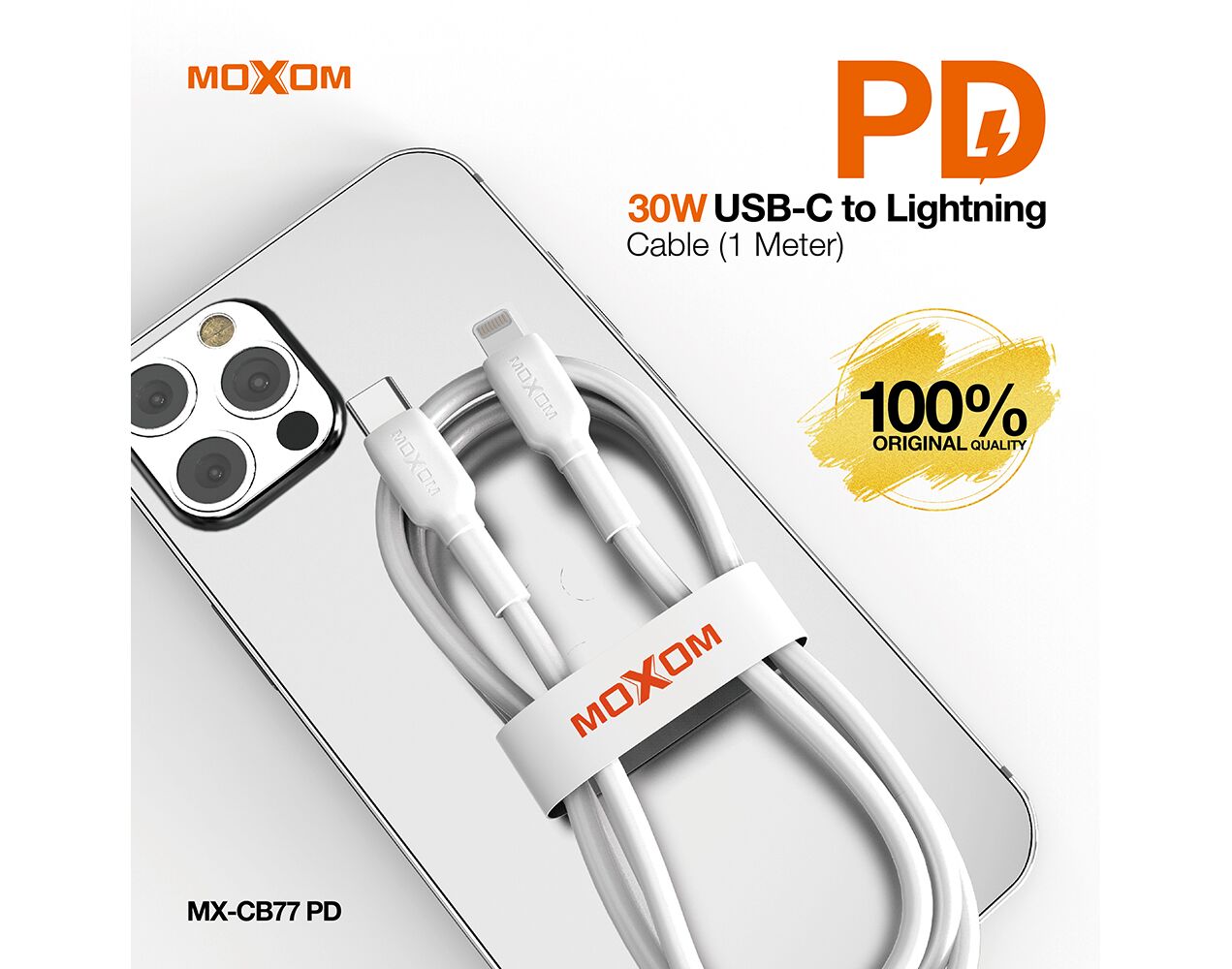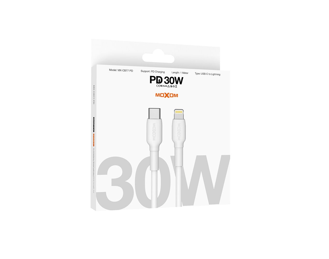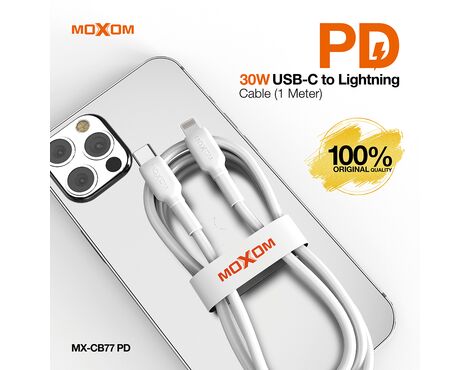USB data kabl MOXOM MX-CB77 PD 30W Type-C na Lightning beli (MS)