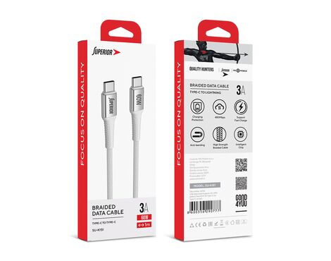 USB data kabl Superior SU-K151 pleteni Fast 60W 3A Type-C na Type-C 1m beli (MS)