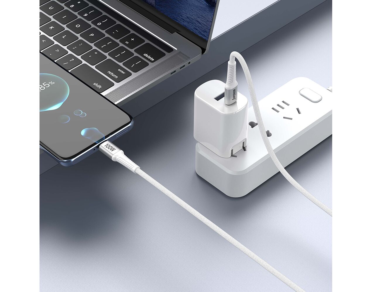 USB data kabl Superior SU-K152 pleteni Fast 100W 5A Type C to Type C 1m beli (MS)