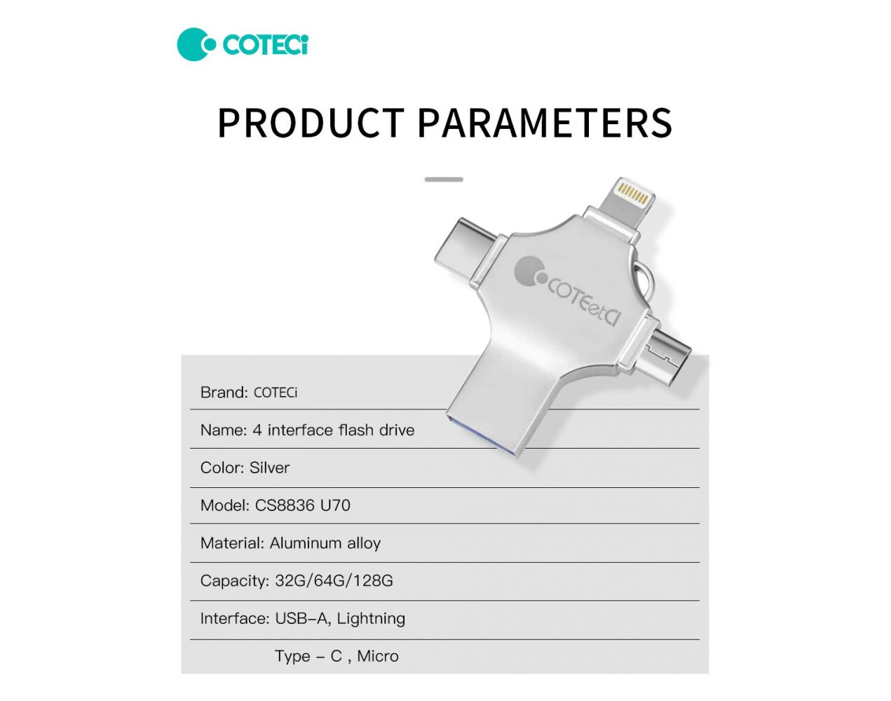 USB flash memorija Coteci CS8836 32GB USB 3.0/micro USB/Type C/lightning