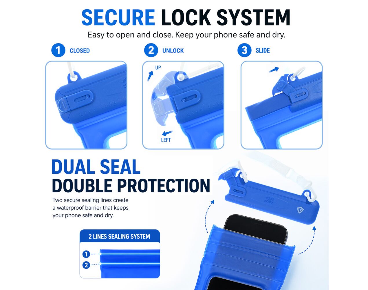 100% Vodootporna – IPX8 zaštita - Pouzdano štiti vaš telefon od vode, kiše i potapanja. Idealna za plivanje, vožnju čamcem, letovanja i vodene sportove.